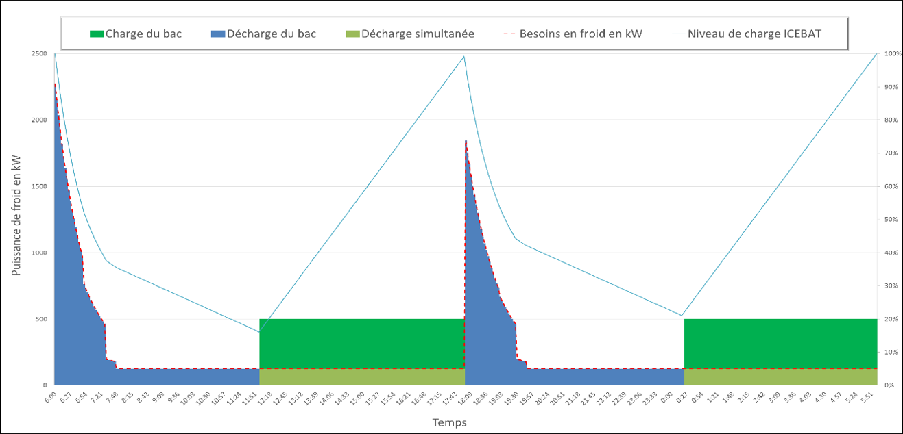 1. The process demands two strong cooling duty peaks of 2275kW and 1850kW which are delivered by the IceBat on a charge/use/recharge operating strategy.